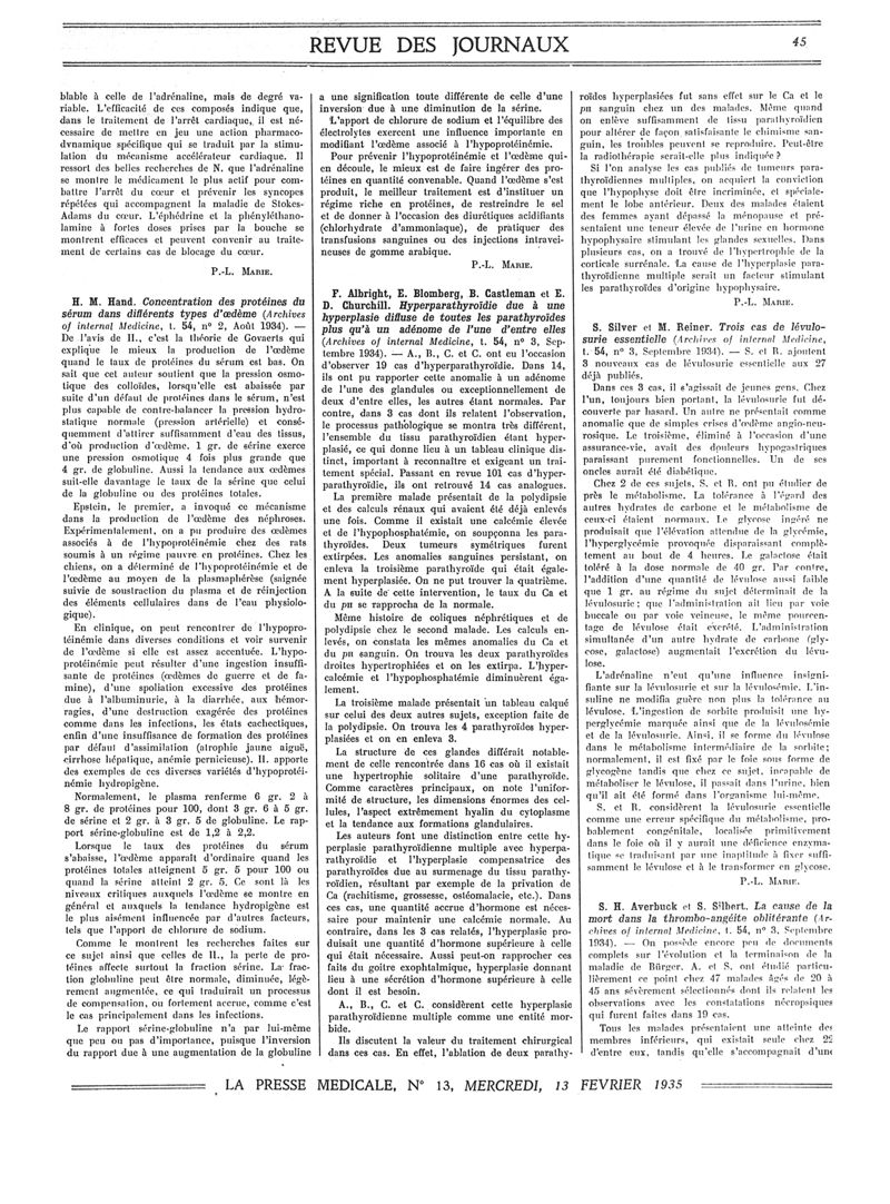 1935, Revue des journaux. -