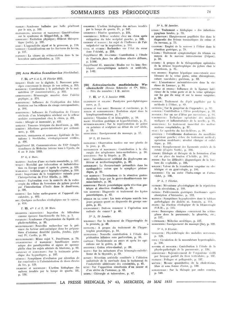 1935, Sommaires des périodiques. -