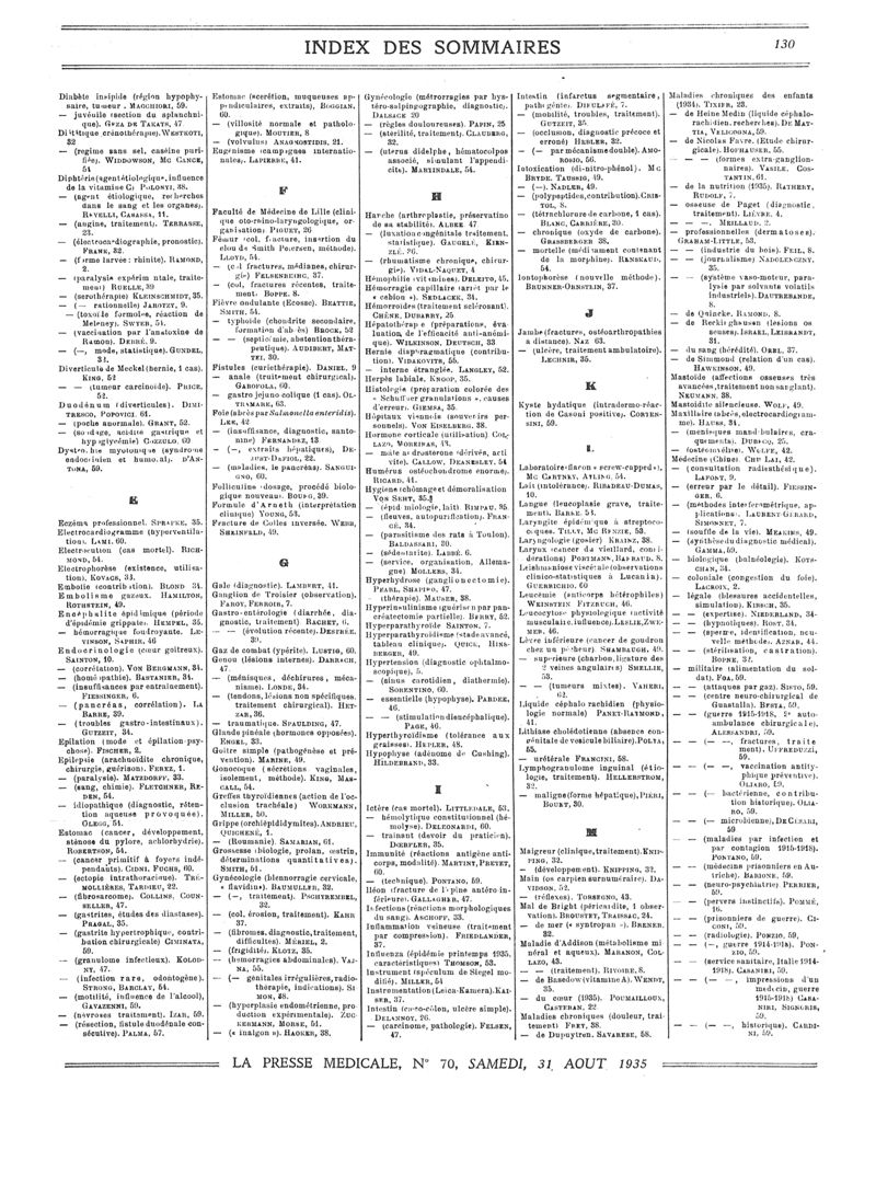 1935, Sommaires des périodiques. -