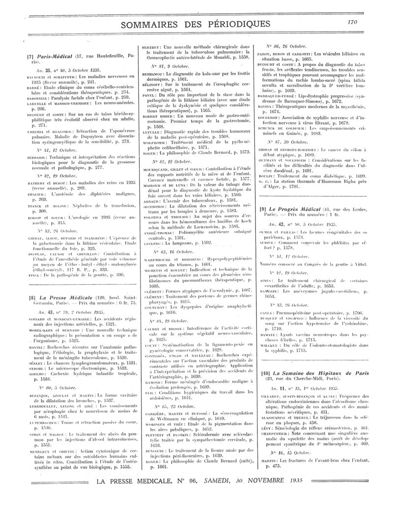 1935, Sommaires des périodiques. -
