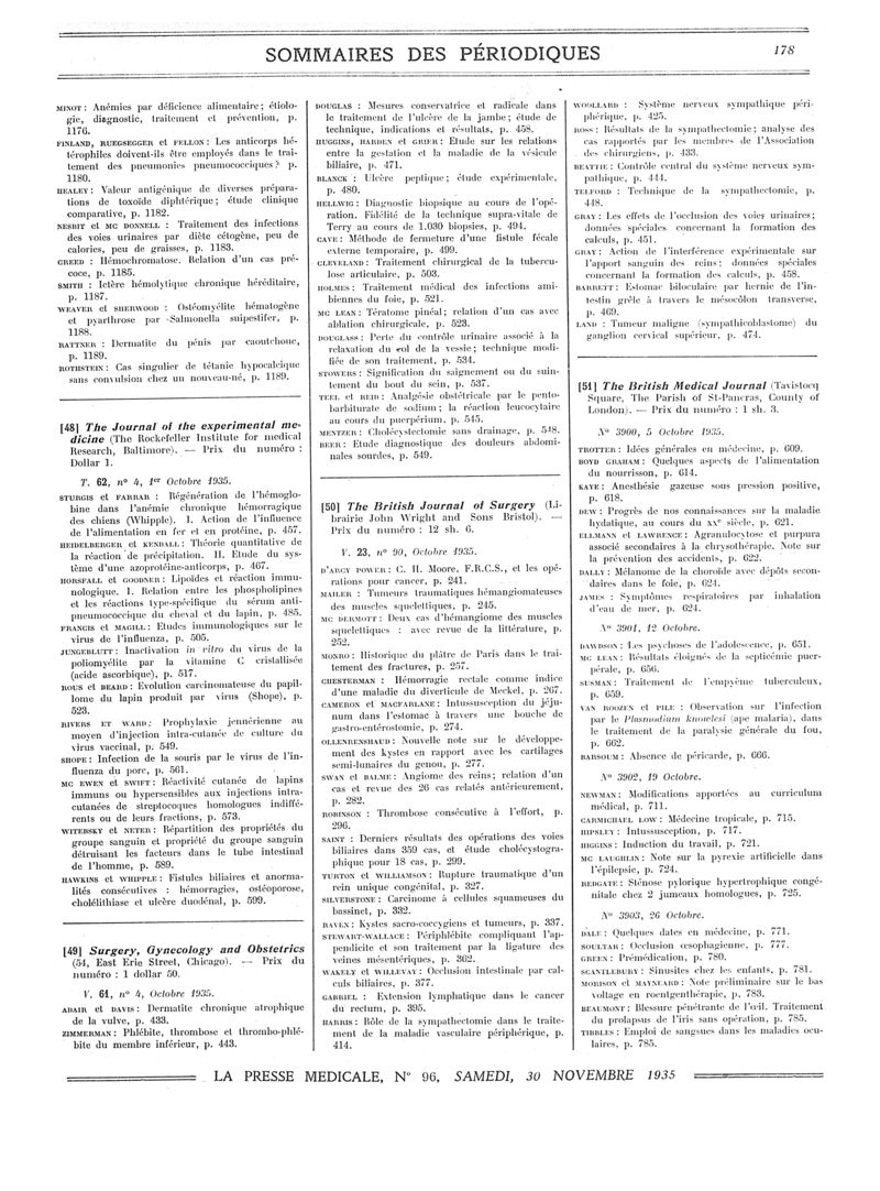 1935, Sommaires des périodiques. -