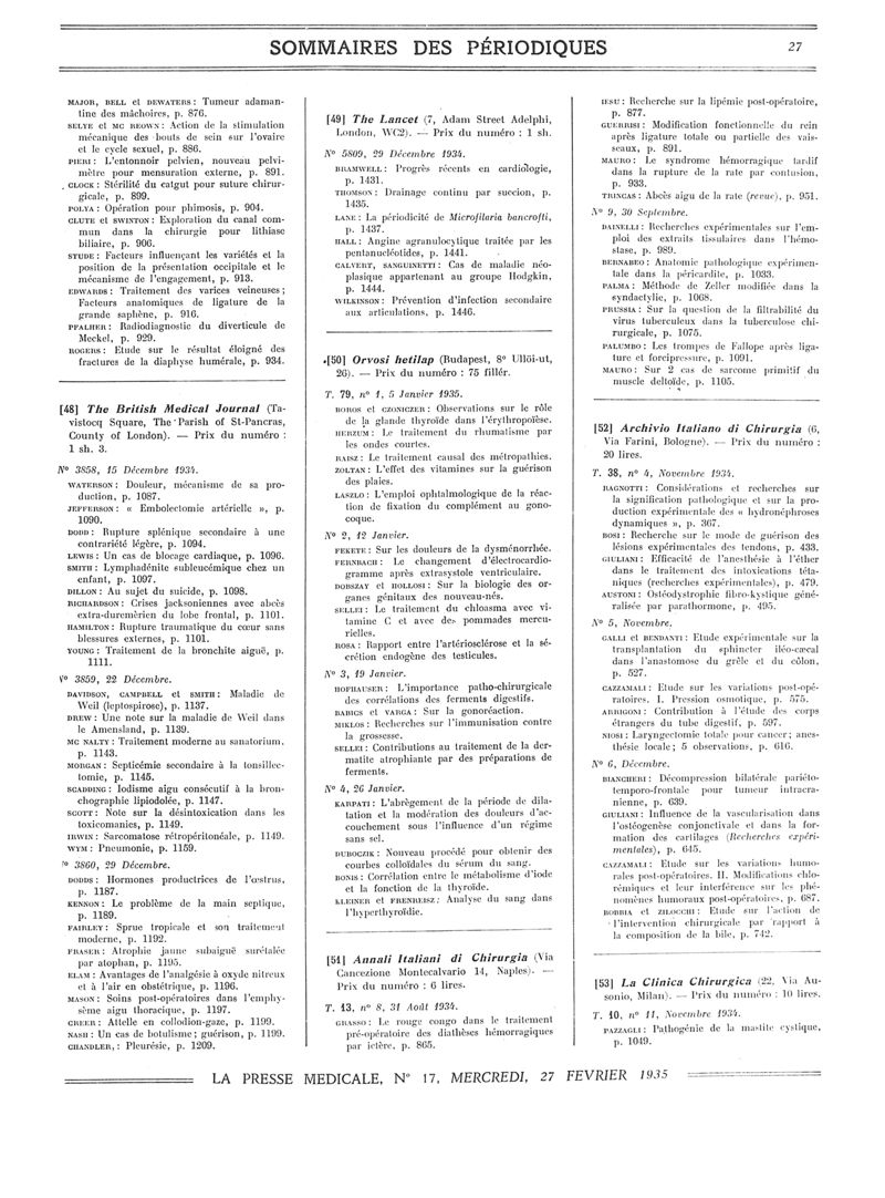 1935, Sommaires des périodiques. -