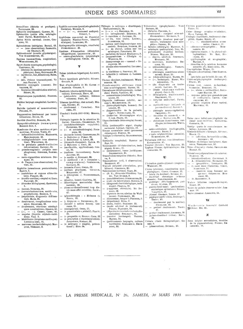 1935, Sommaires des périodiques. -