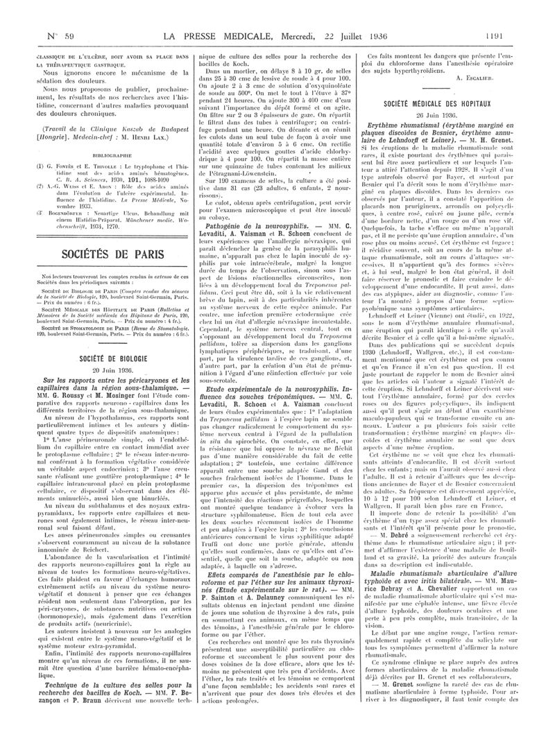 1936, Articles originaux. -