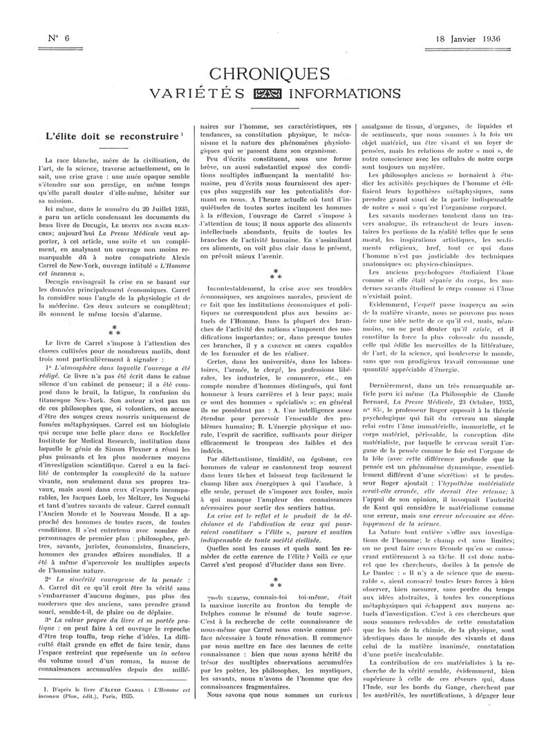 1936, Articles originaux. -