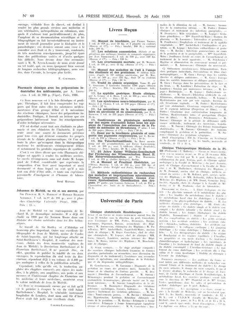 1936, Articles originaux. -