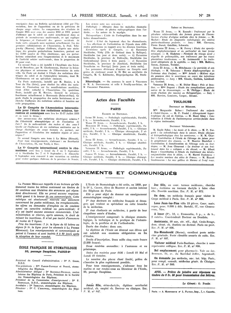 1936, Articles originaux. -