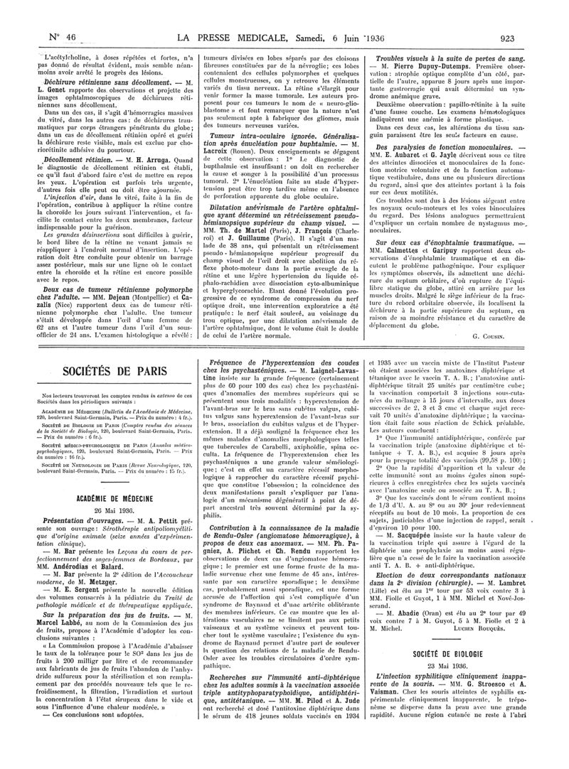 1936, Articles originaux. -