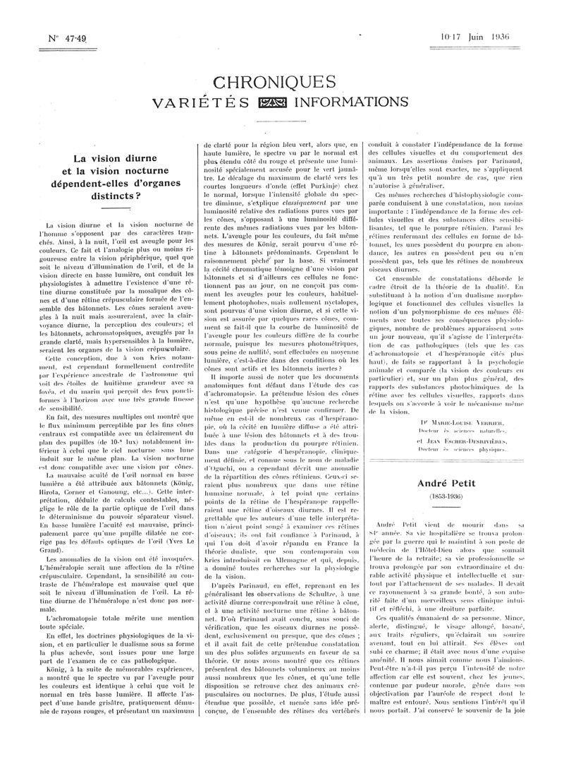 1936, Articles originaux. -
