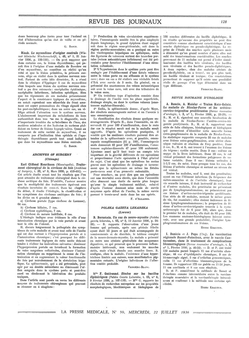 1936, Revue des journaux. -