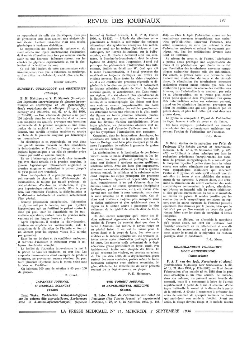 1936, Revue des journaux. -