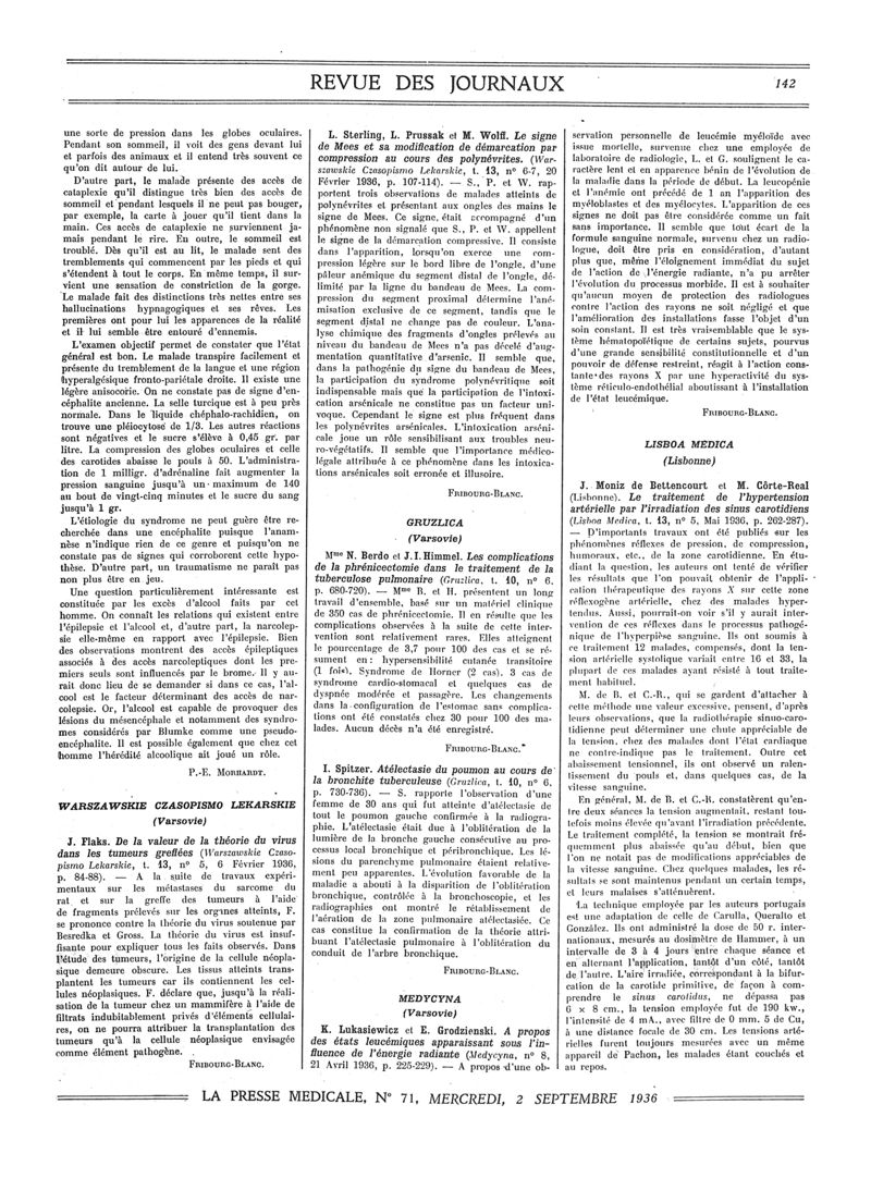 1936, Revue des journaux. -