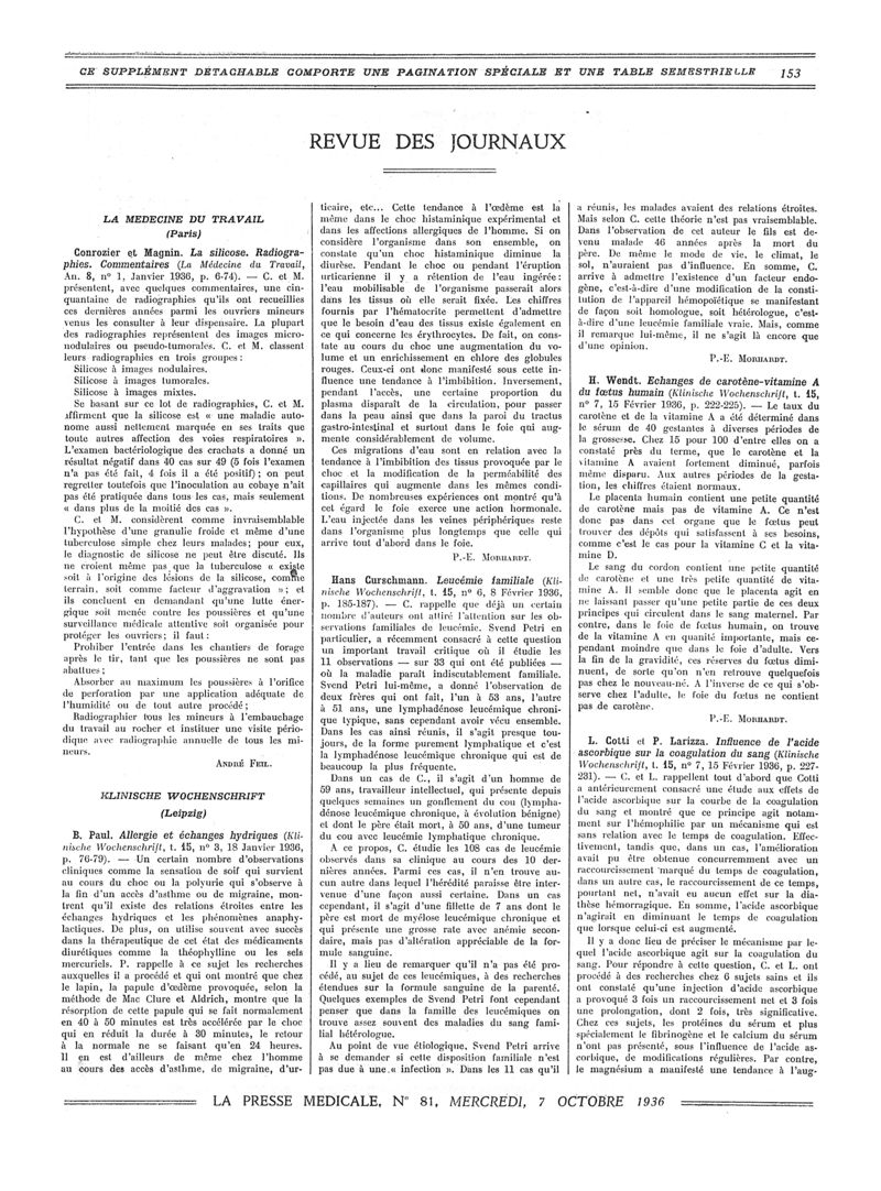 1936, Revue des journaux. -