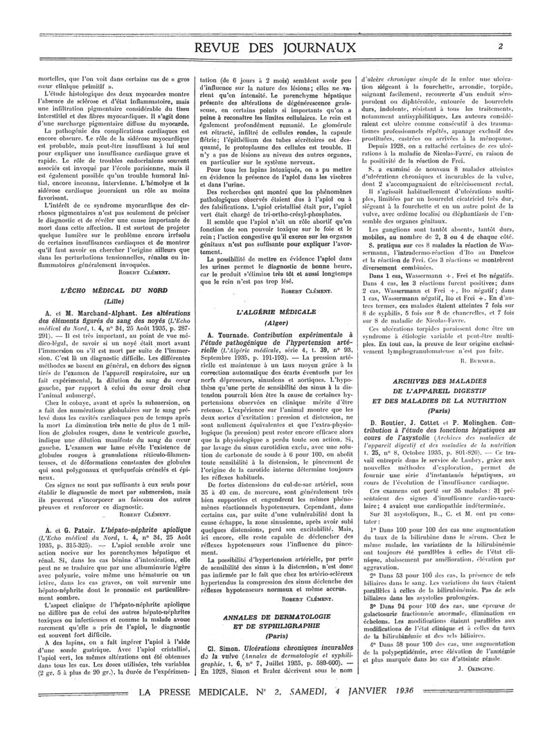 1936, Revue des journaux. -