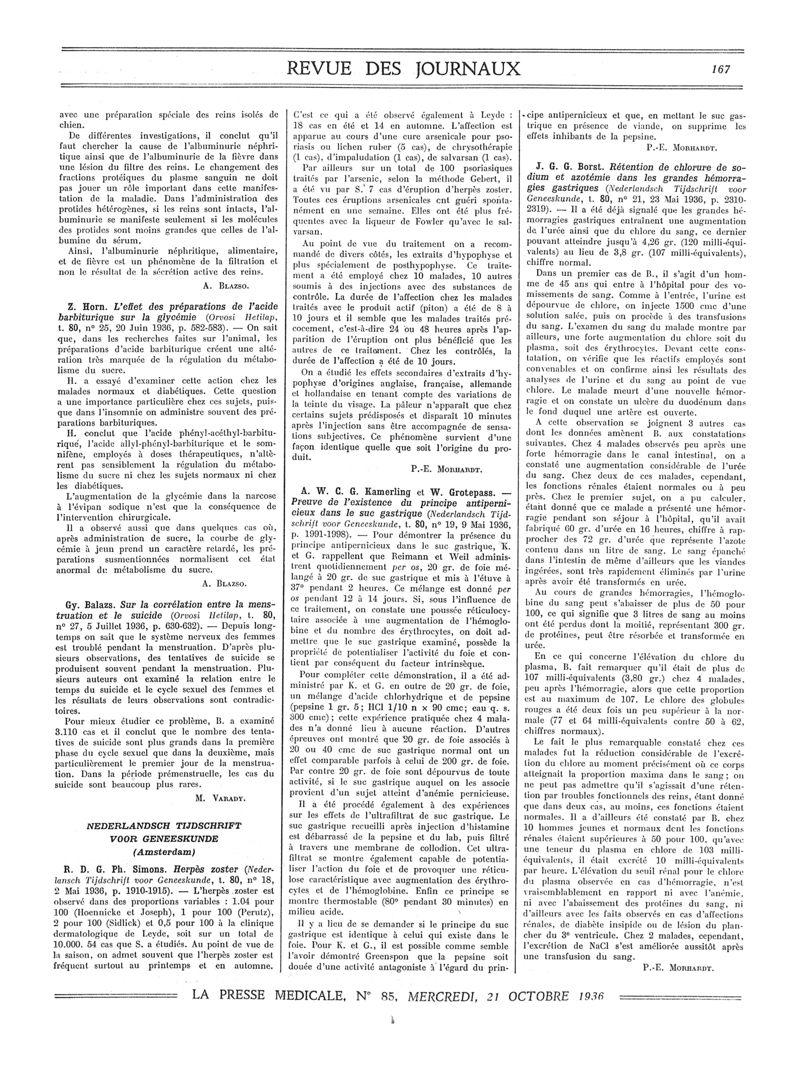 1936, Revue des journaux. -