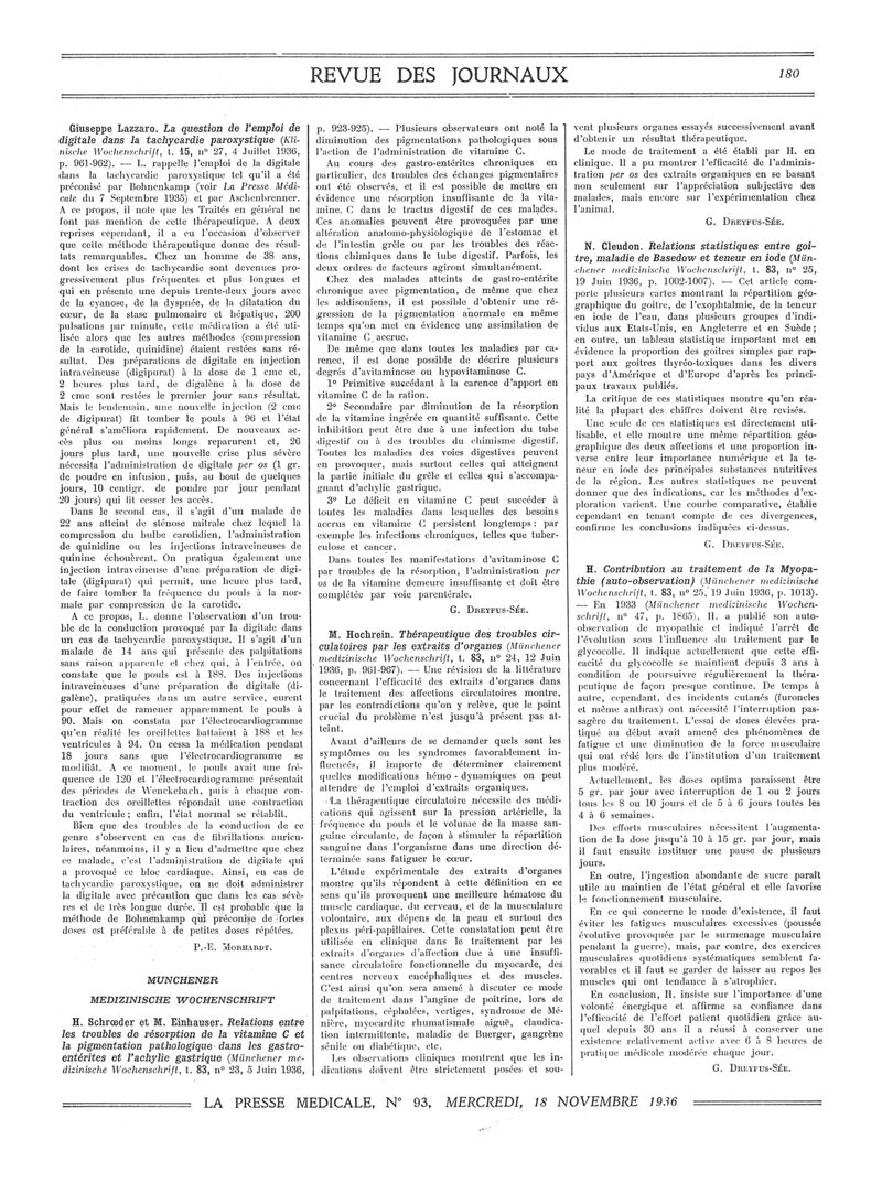 1936, Revue des journaux. -