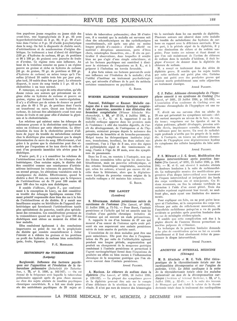 1936, Revue des journaux. -