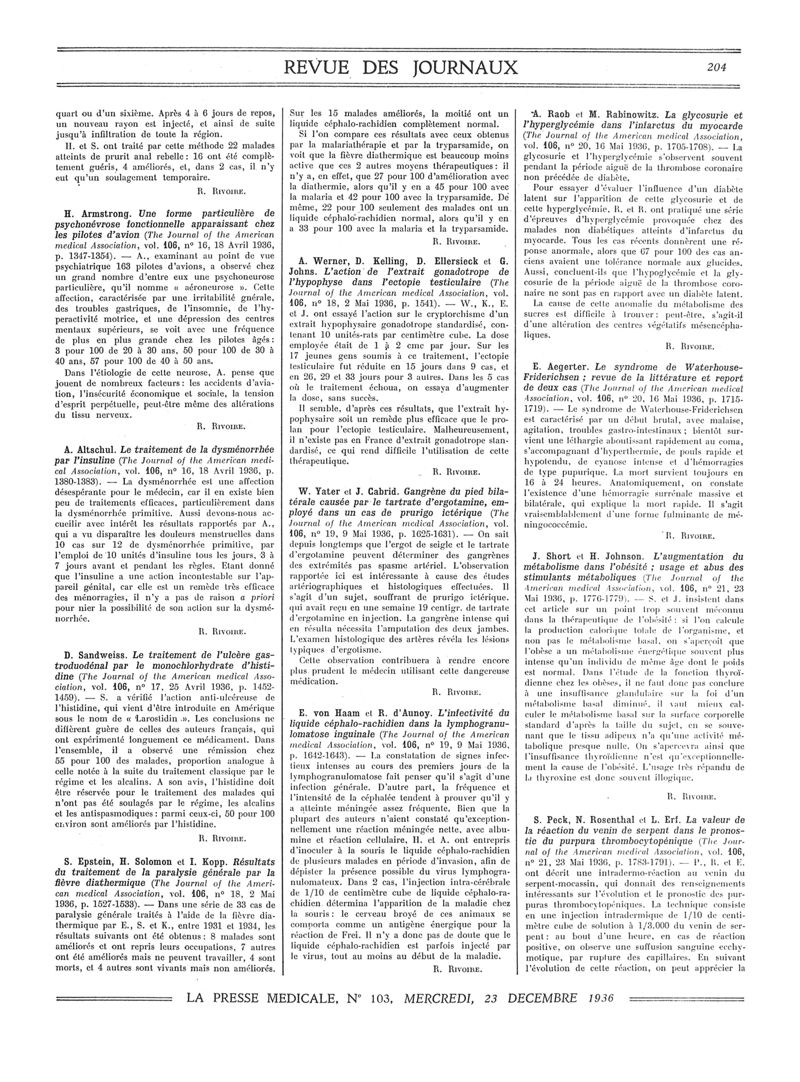 1936, Revue des journaux. -