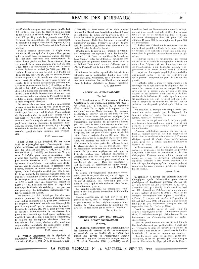 1936, Revue des journaux. -