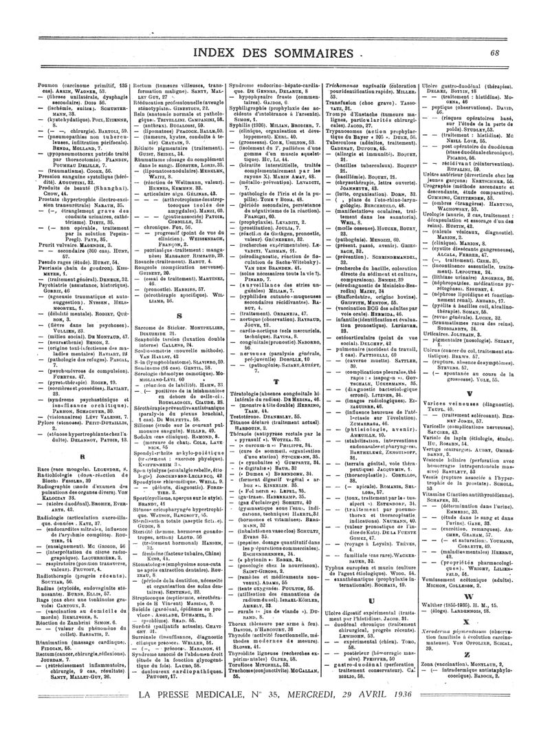 1936, Sommaires des périodiques. -