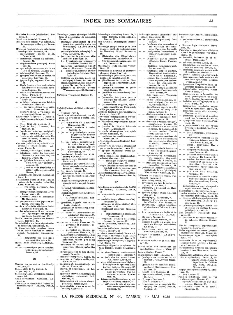 1936, Sommaires des périodiques. -