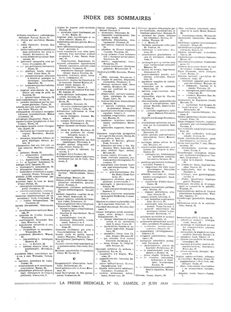 1936, Sommaires des périodiques. -