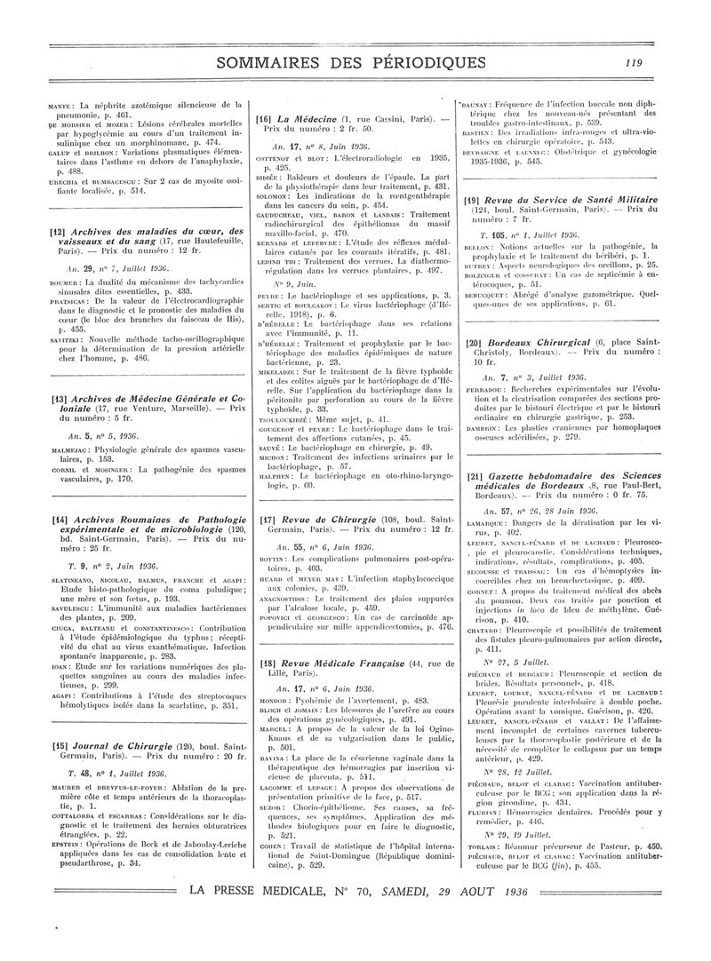 1936, Sommaires des périodiques. -