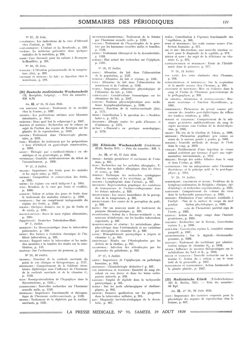 1936, Sommaires des périodiques. -