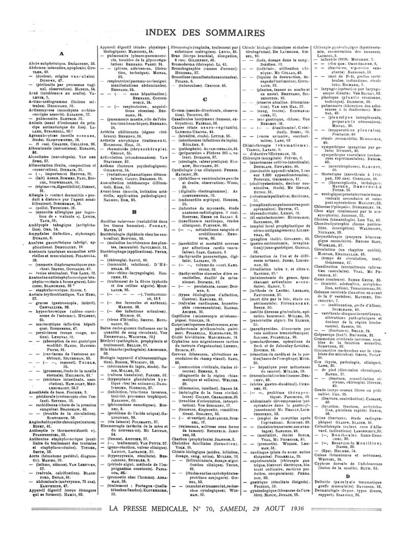 1936, Sommaires des périodiques. -