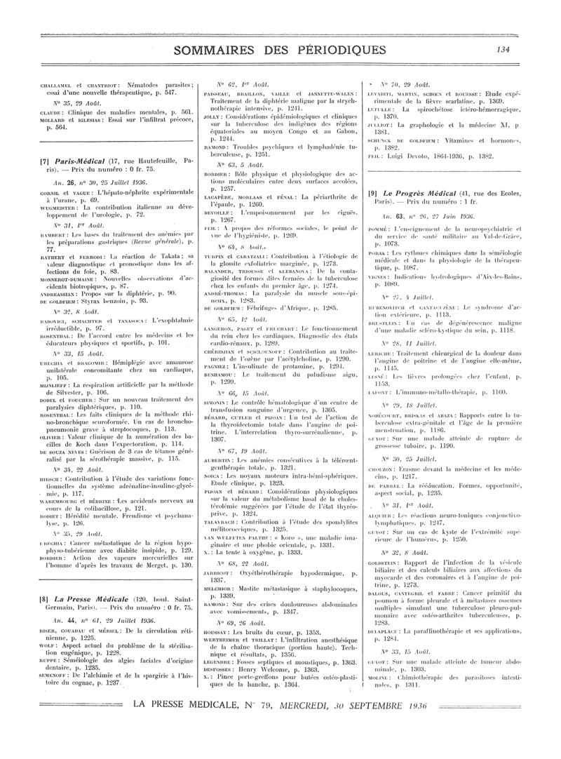 1936, Sommaires des périodiques. -