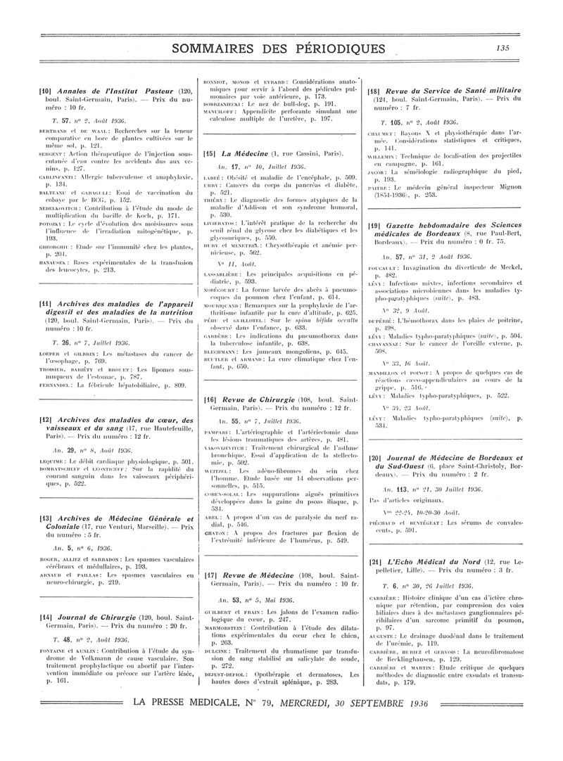 1936, Sommaires des périodiques. -