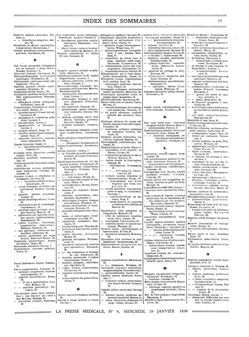 1936, Sommaires des périodiques. -