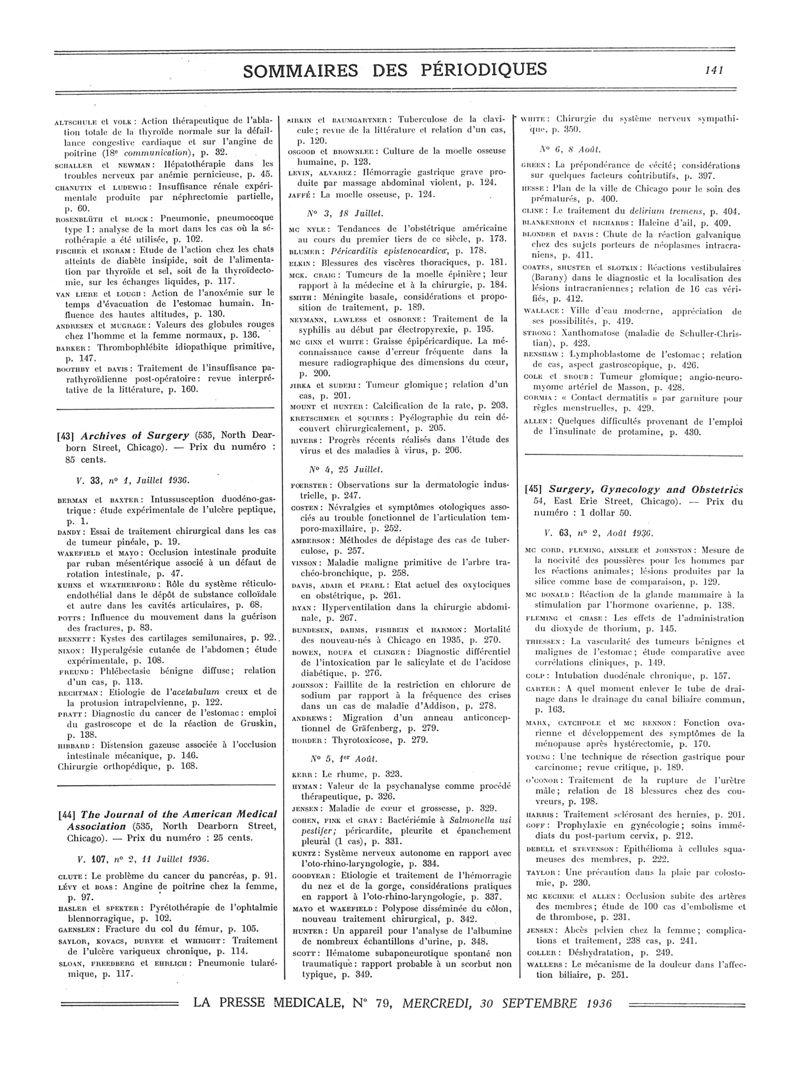 1936, Sommaires des périodiques. -