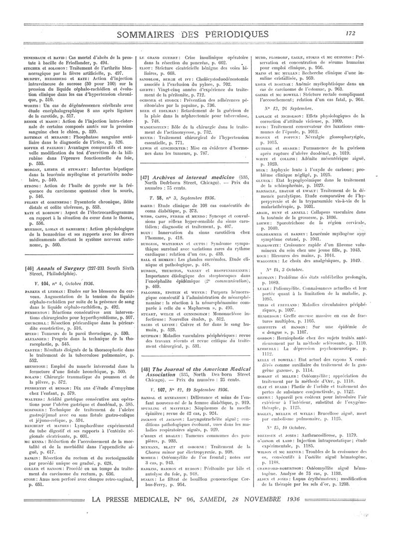 1936, Sommaires des périodiques. -