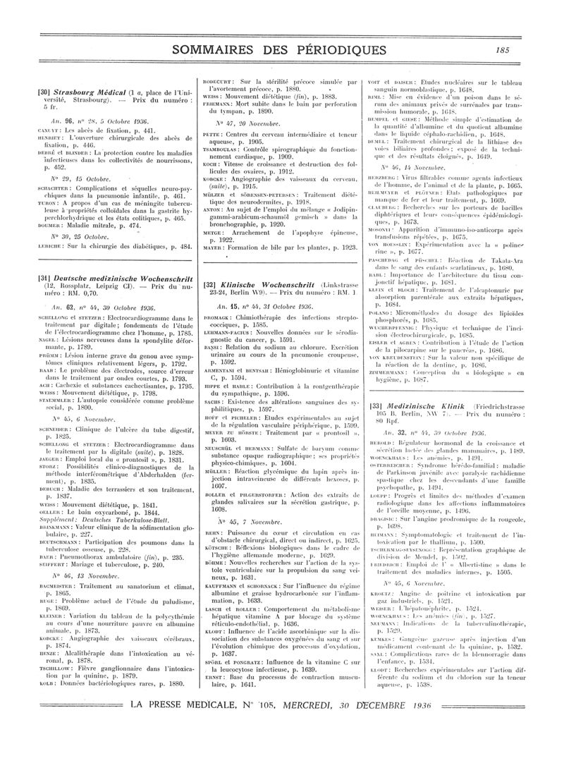 1936, Sommaires des périodiques. -