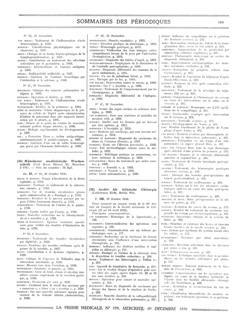 1936, Sommaires des périodiques. -