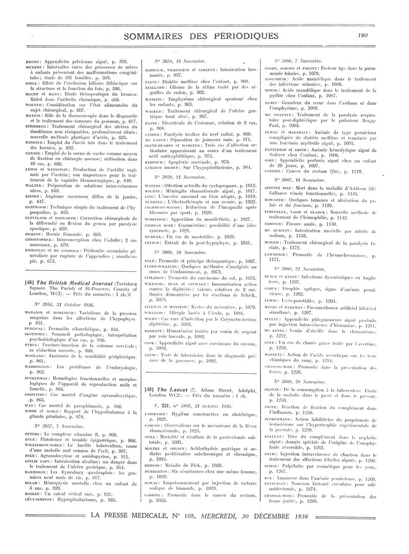 1936, Sommaires des périodiques. -