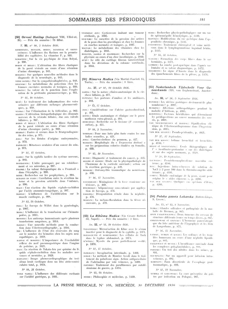 1936, Sommaires des périodiques. -