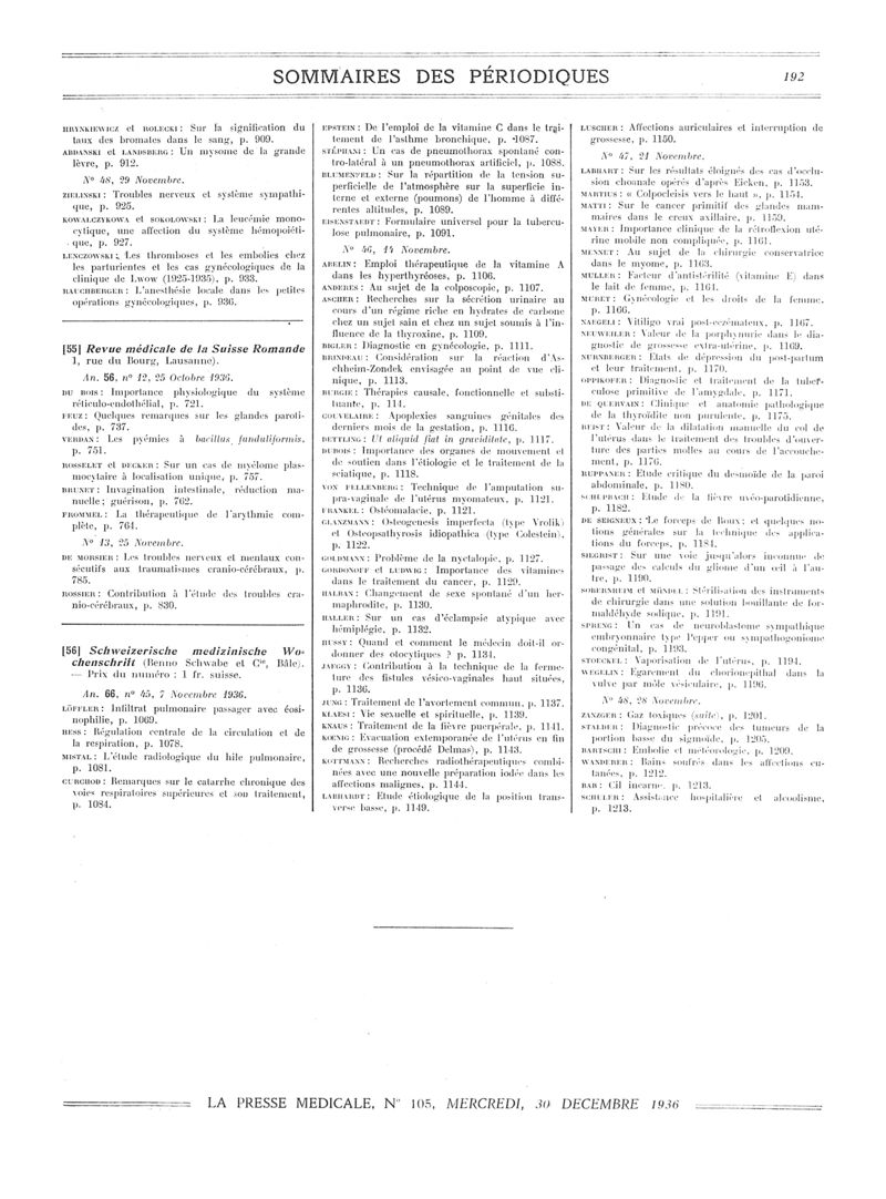 1936, Sommaires des périodiques. -