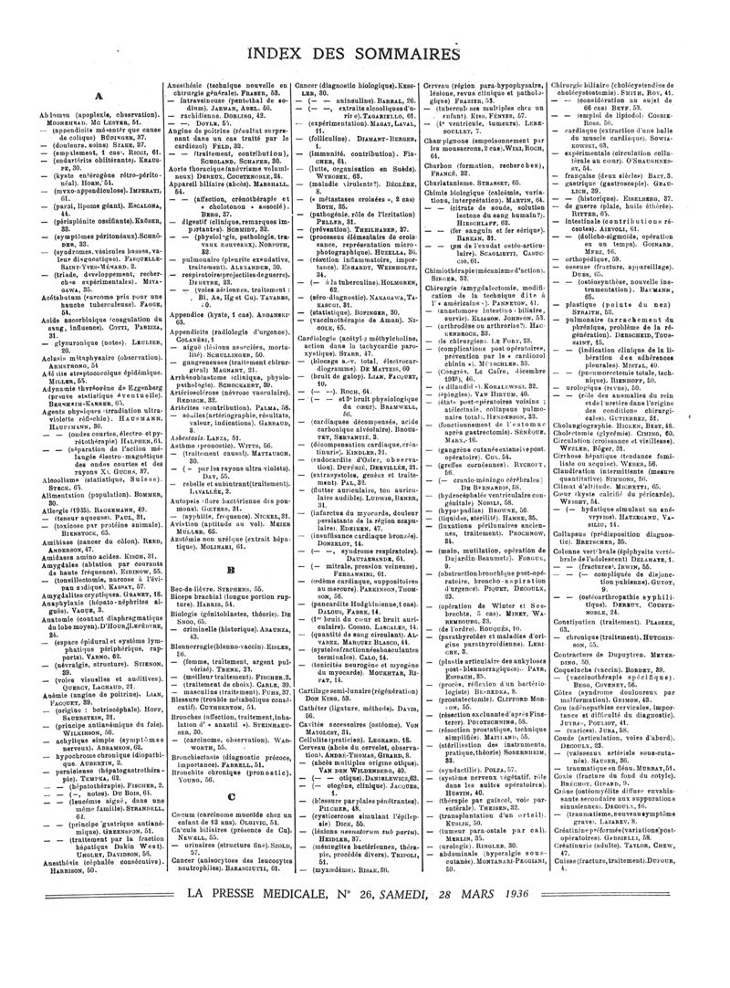 1936, Sommaires des périodiques. -