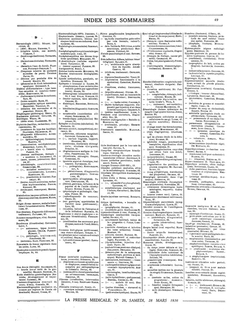 1936, Sommaires des périodiques. -
