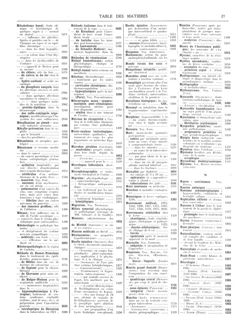 1936, Volume de tables. -