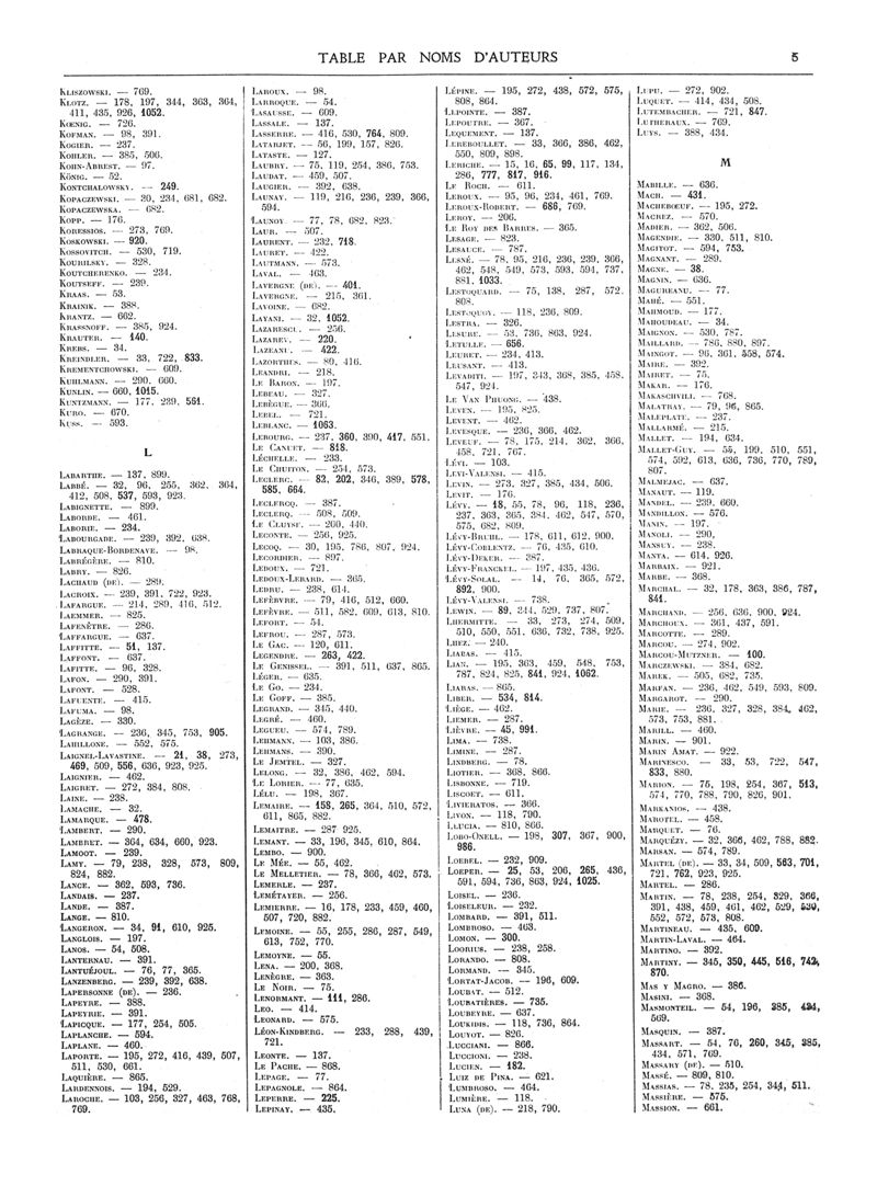 1936, Volume de tables. -