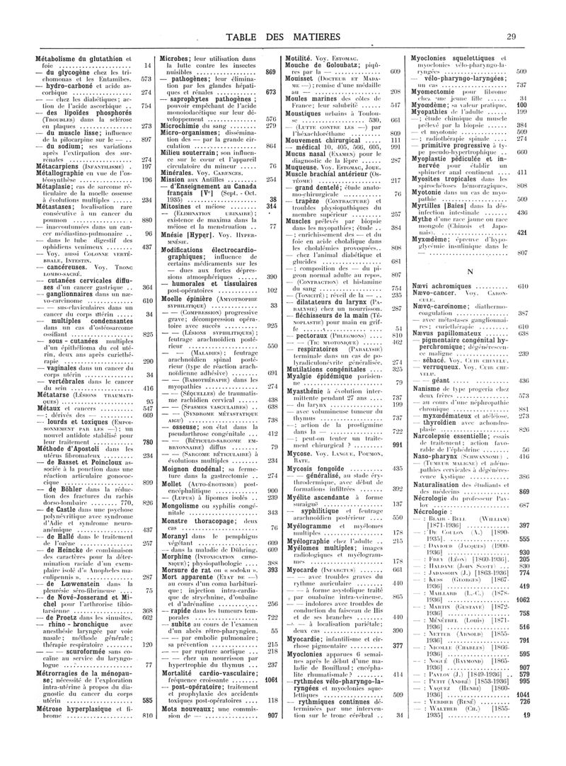 1936, Volume de tables. -
