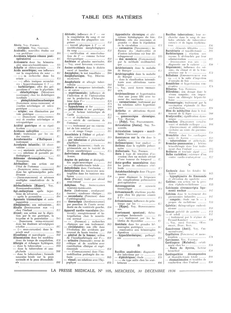 1936, Volume de tables. -