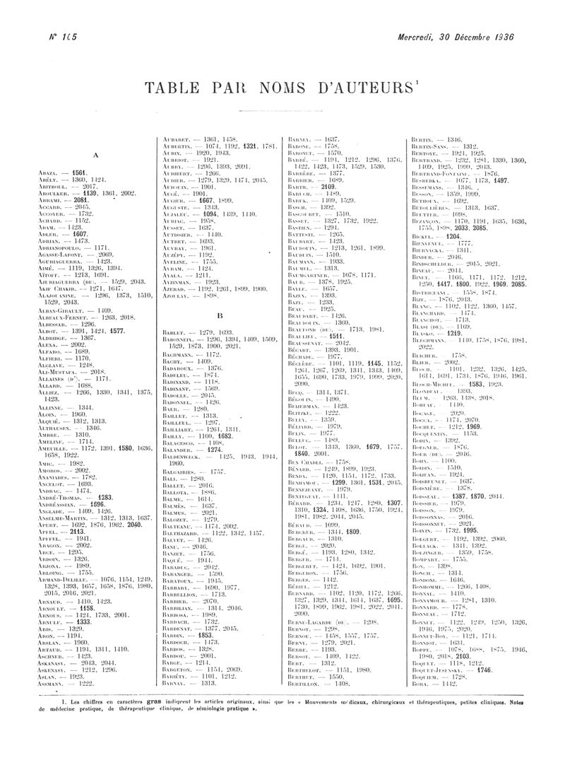 1936, Volume de tables. -