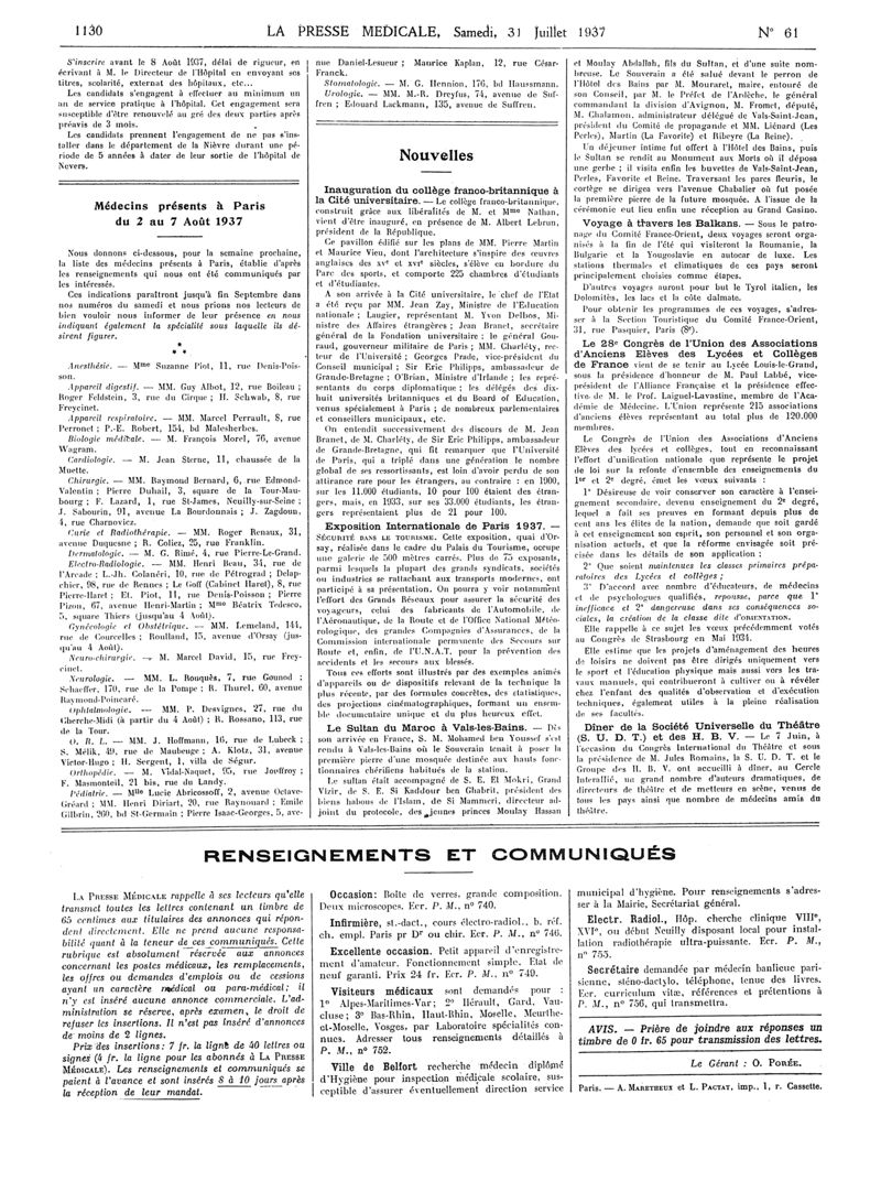 1937, Articles originaux. -