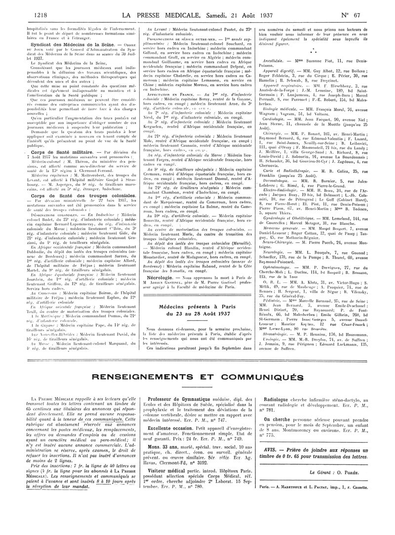 1937, Articles originaux. -
