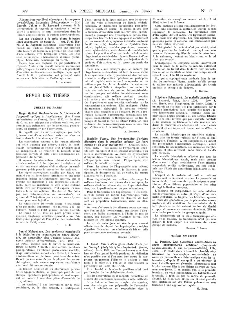 1937, Articles originaux. -