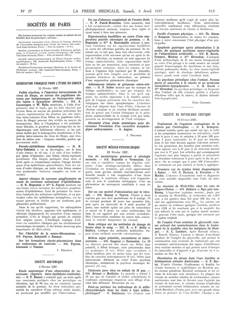1937, Articles originaux. -
